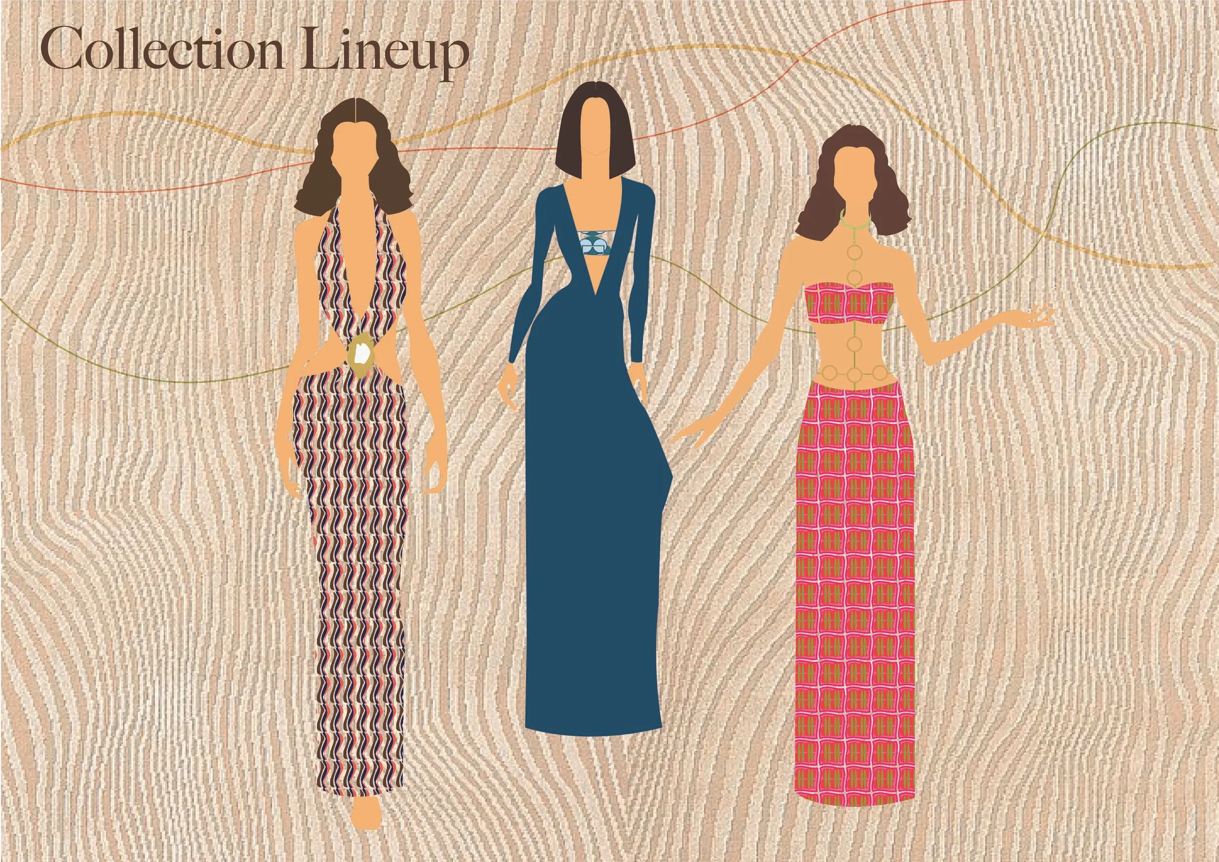 Evenings on the French Riviera is a Spring/Summer 2026 women's dress collection. It is inspired by the elegance of the French Riviera. Featuring bold prints, cutouts, and sleek silhouettes, the collection highlights resort-ready luxury for independent women ages 20-30. Created in Adobe Illustrator, the designs combine vibrant original patterns and coastal inspired colors to evoke effortless sophistication and seaside glamour.